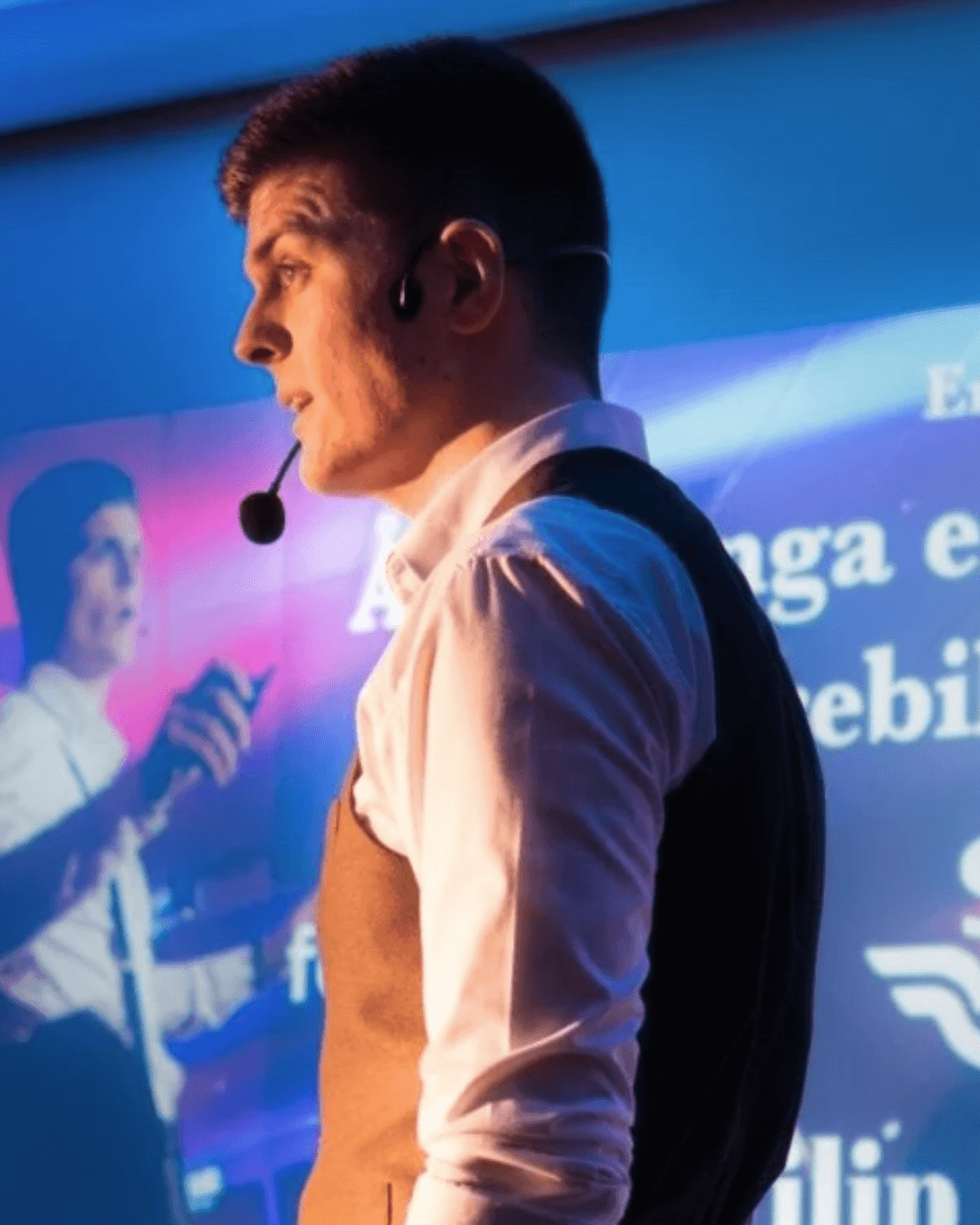 Bakgrunden är också en del av hans profil: han beskriver hur han gått från att ha en talnedsättning/stamning och stark nervositet till att bli en professionell talare, och använder de erfarenheterna i sitt innehåll